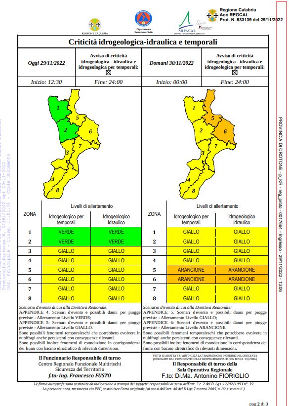 Per la giornata di domani sul territorio crotonese la Protezione Civile Regionale ha rilanciato uno stato di allerta arancione (Leggi Qui).