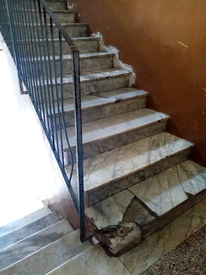 La denuncia al sindaco di Crotone e allo stesso ufficio Aterp: “Si segnala anche pericolo caduta calcinacci, mentre il pericolo si presenta all’ingresso portone con la pensilina parzialmente caduta, mentre l’altra metà è diventato un pericolo serio per gli abitanti dello stabile. Ognuno per le proprie competenze si richiede intervento urgente”.