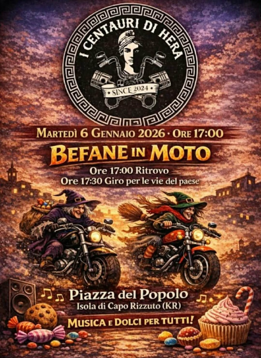 Isola di Capo Rizzuto - Epifania speciale con I Centauri di Hera. Il gruppo promuove nella giornata di oggi, 6 gennaio, a partire dalle ore 17:00 l'iniziativa "Befane in Moto".