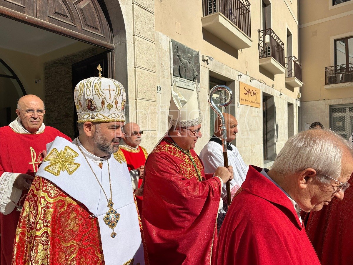 Alla sua prima festa patronale da vescovo, monsignor Alberto Torriani ha ricordato l’importanza di questo appuntamento: «La festa del santo patrono non raccoglie solo i credenti, ma tutta la cittadinanza che in tante espressioni si ferma e ritrova una dimensione comunitaria. Crotone oggi ha fame di lavoro, di futuro, di speranza. La Chiesa si propone come soggetto di alleanza tra istituzioni, cittadini e associazioni per far crescere questa terra». Accanto a lui c’era Monsignor Hryhoriy Komar, Vescovo Eparca per la comunità greco-cattolica ucraina in Italia, in carica dal 2025, a testimoniare l’unità delle diverse comunità cristiane presenti nel territorio.
