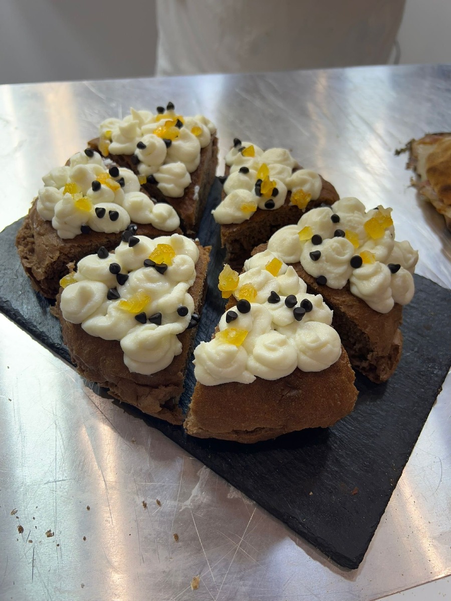 Per l’edizione di quest’anno, Battigaglia propone una selezione di creazioni che raccontano la sua firma: la pizza contemporanea autunno calabrese con crema di zucca aromatizzata al rosmarino, funghi porcini freschi saltati al burro aglio e timo e granella di castagne calabresi; la pizza in pala doppio crunch in due versioni, la prima con crema di patate mpacchiuse, porchetta croccante e scamorza affumicata e la seconda con rosmarina, mortadella e provolone piccante; e infine il padellino al cacao con impasto al cacao, crema di castagne e cioccolato, crema di ricotta pecorina crotonese, gocce di cioccolato e arancia candita, una chiusura elegante che unisce pasticceria, tradizione e territorio.