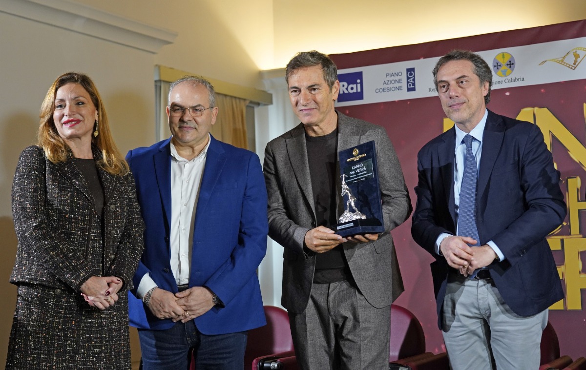 Catanzaro - Si è tenuta all’interno del Complesso Monumentale del San Giovanni di Catanzaro, la conferenza stampa di presentazione de “L’Anno che Verrà”, storico appuntamento televisivo di Rai Uno dedicato al Capodanno e giunto alla 23ª edizione. Nel corso della conferenza, il Sindaco di Catanzaro Nicola Fiorita, insieme ad Antonietta Santacroce Sovrintendente del Teatro Politeama di Catanzaro e al maestro Michele Affidato hanno consegnato a Marco Liorni il “Cavatore d’Argento”, una scultura ispirata a uno dei simboli identitari più antichi della città di Catanzaro.
