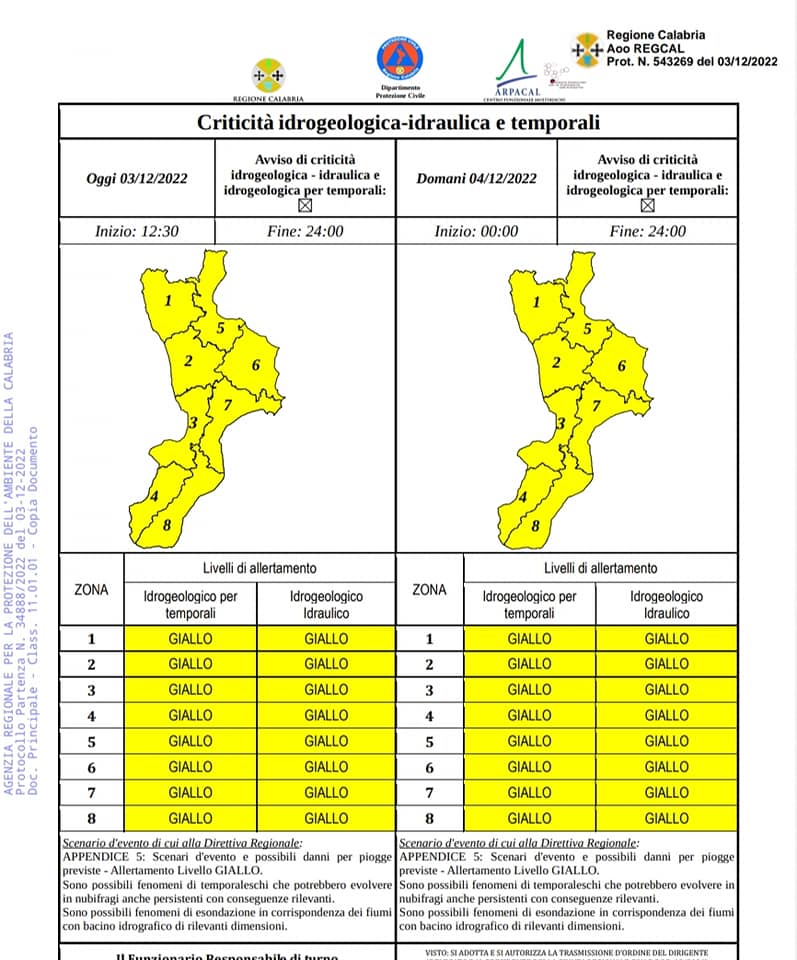 Maltempo – Sulla base dei fenomeni, la Protezione Civile Calabria ha emanato allerta gialla anche per oggi, domenica 4 dicembre 2022.La Protezione Civile, inoltre, “ricorda, gli scenari previsti con l...