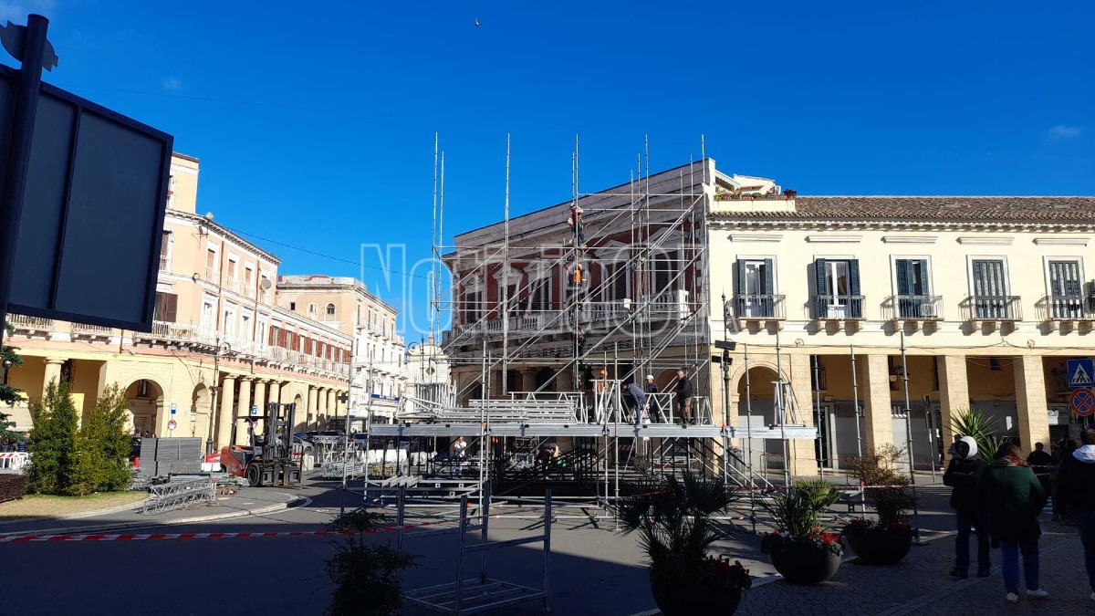 Montaggio del palco in corso a Piazza Pitagora: Crotone si prepara al Capodanno con Max Gazzè
