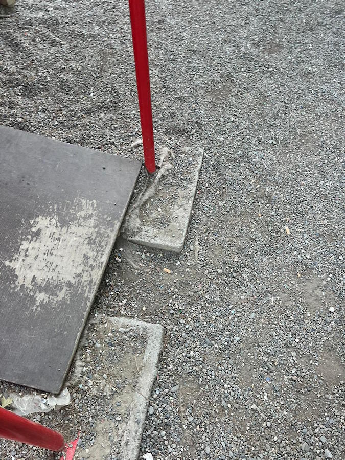 Ci preoccupa lo stato di abbandono in cui versa l’area giochi che può rappresentare un pericolo per l’incolumità dei bambini fruitori dei giochi stessi, le staccionate di recinzione, gravemente danneggiate, presentano chiodi a vista e schegge di legno sporgenti. Le basi dei giochi, che dovrebbero essere coperte da un consistente strato di terreno antitrauma, al fine di attutire eventuali cadute, risultano essere totalmente scoperte rappresentando un pericolo evidente per dei bambini.