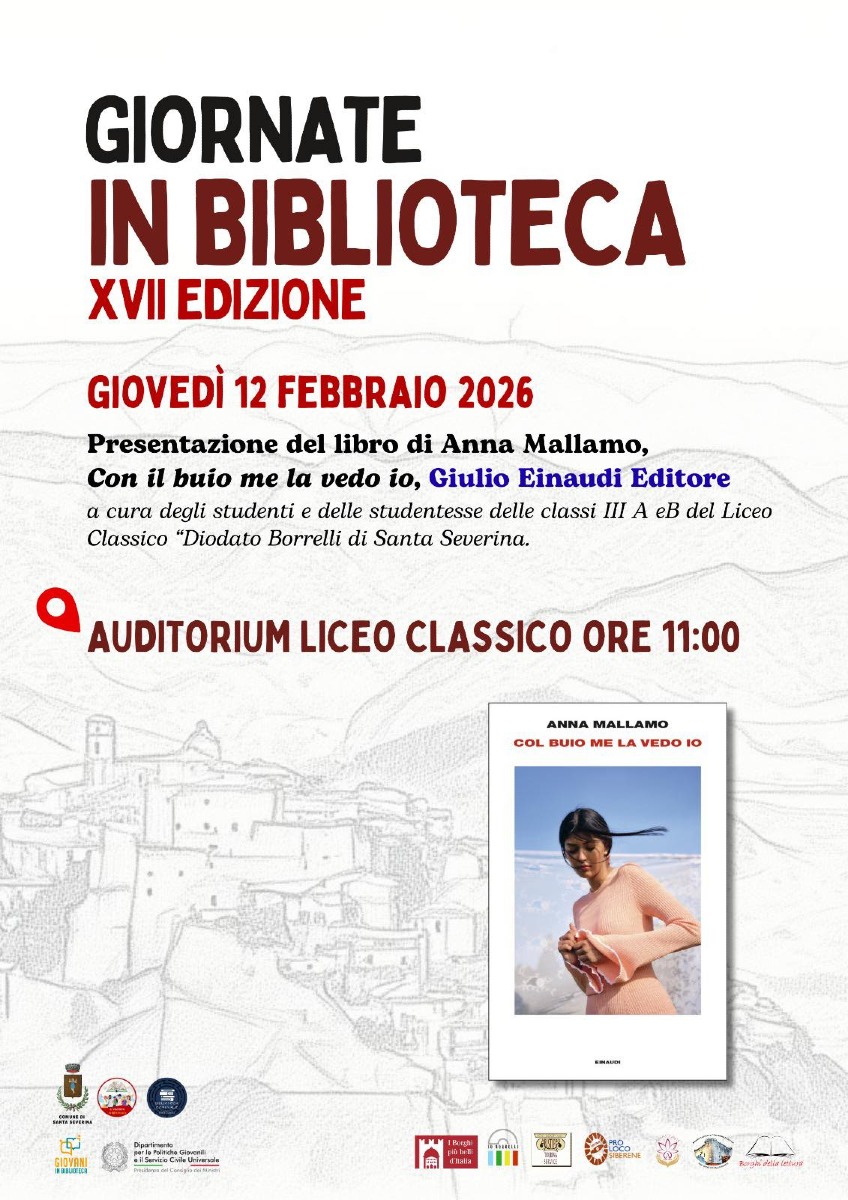 Santa Severina - Giovedì 12 febbraio 2026, alle ore 11:00, presso l’Auditorium del Liceo Classico "Diodato Borrelli" di Santa Severina, si terrà la presentazione del libro Con il buio me la vedo io di Anna Mallamo (Giulio Einaudi Editore).