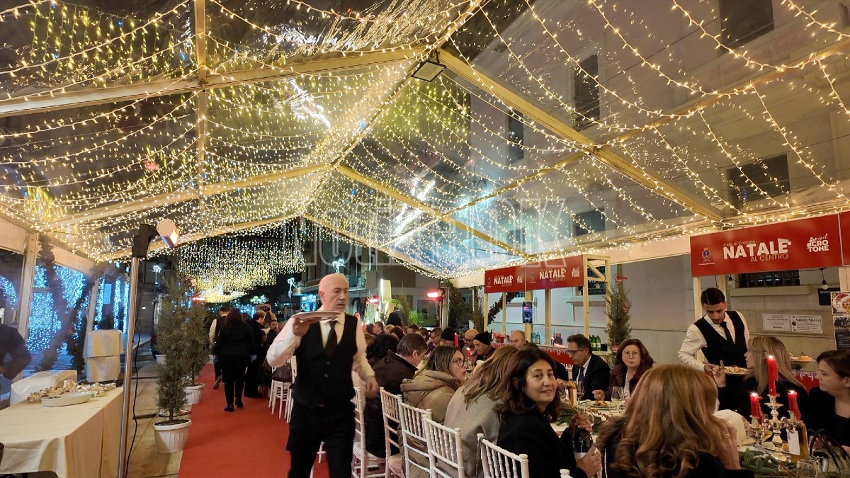 Il percorso gastronomico, ispirato ai profumi del territorio, si è aperto con un antipasto che ha unito la tradizione alla creatività, seguito dal maccheroncino pitagorico al ragù della tradizione, simbolo della cucina identitaria crotonese. Come secondo, un delicato cosciotto di pollo farcito alle erbe aromatiche, accompagnato da una soffice mousse di patate silane. A chiudere la cena, una selezione di dolci natalizi artigianali, realizzati dai maestri pasticceri crotonesi, in un ideale abbraccio di gusto e condivisione.