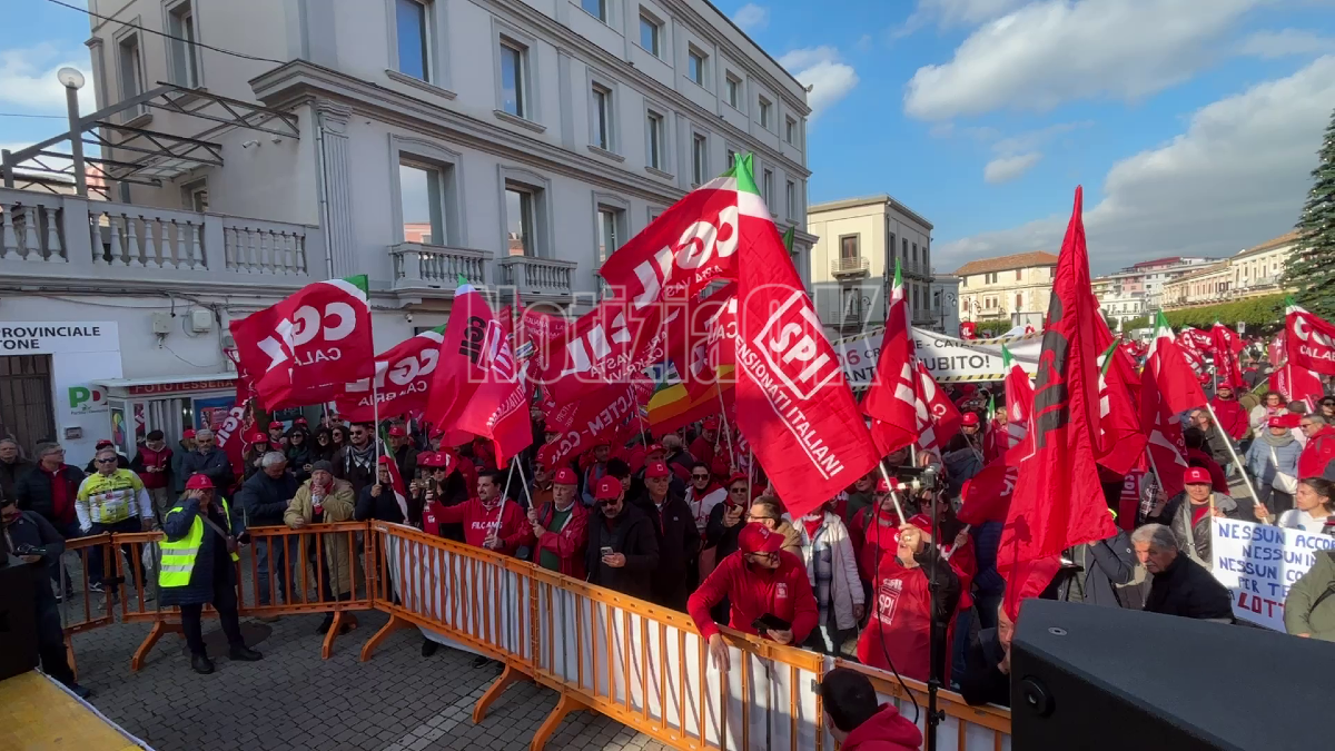 Un Paese in sciopero generale indetto dalla Cgil, e Crotone è stata scelta come sede della mobilitazione regionale. Fin dalle prime ore del mattino pullman da tutte le province calabresi hanno raggiunto la città, riempiendo le strade intorno allo stadio Ezio Scida, da cui è partito il corteo che ha attraversato il centro fino a Piazza Pitagora, teatro degli interventi finali.