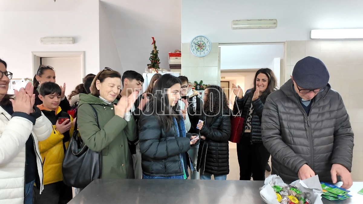 La professoressa Elvira Liotti, parlando con noi, ha spiegato lo spirito dell’iniziativa: “Siamo qui grazie alla nostra dirigente scolastica, la professoressa Anna Iannone, per questa bellissima iniziativa di solidarietà che riscalda il cuore di tutti. È stata effettuata una raccolta di buoni spesa a cui hanno partecipato i genitori dei nostri ragazzi, tutti i docenti e il personale scolastico, creando una rete compatta e fortemente sensibile verso chi ha meno di noi. Sono stati raccolti buoni per un importo superiore a mille euro e oggi li devolviamo alla mensa di Padre Pio, nella speranza di aver riscaldato un po’ il cuore di tutti.”